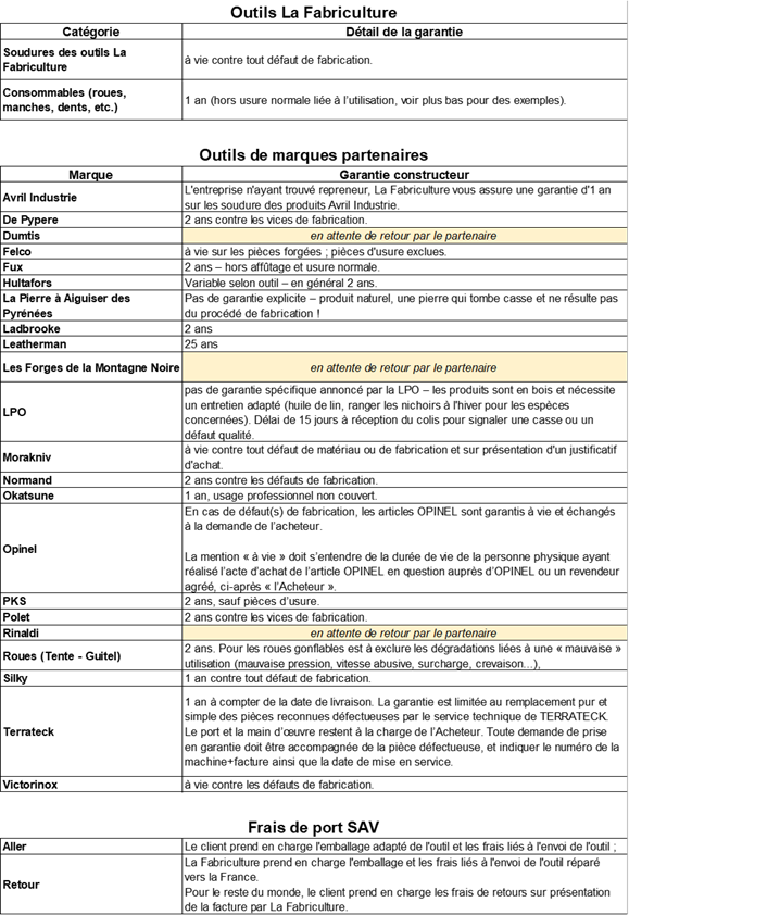 La garantie La Fabriculture